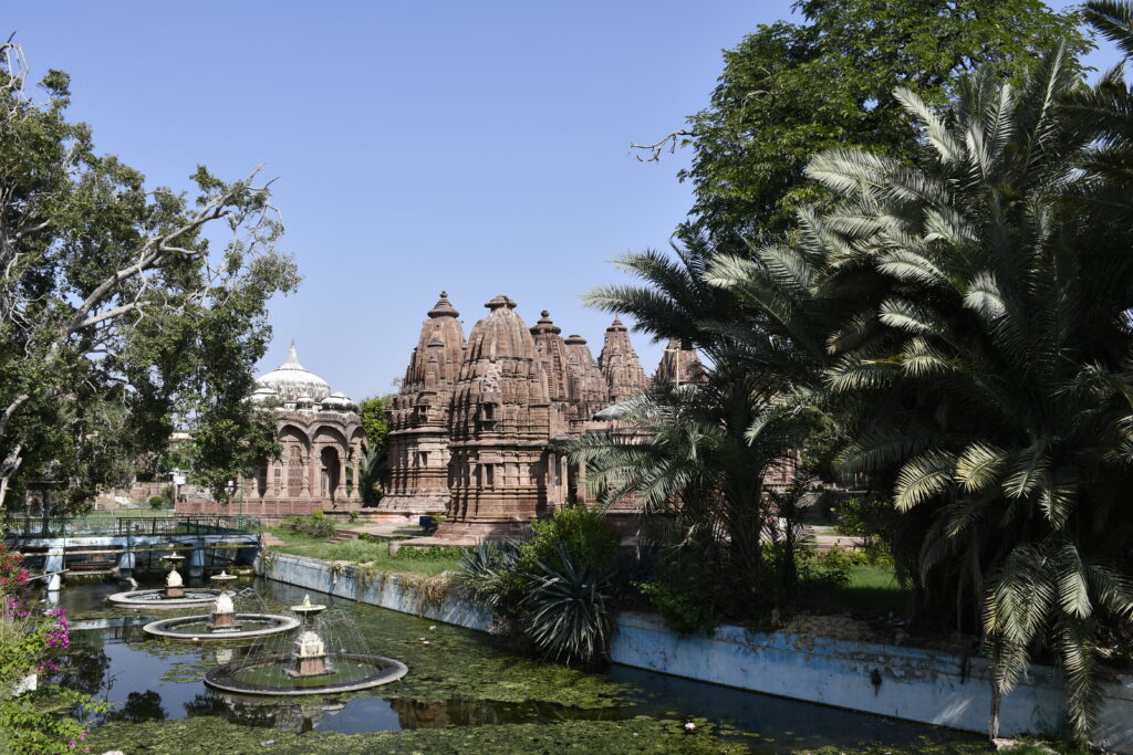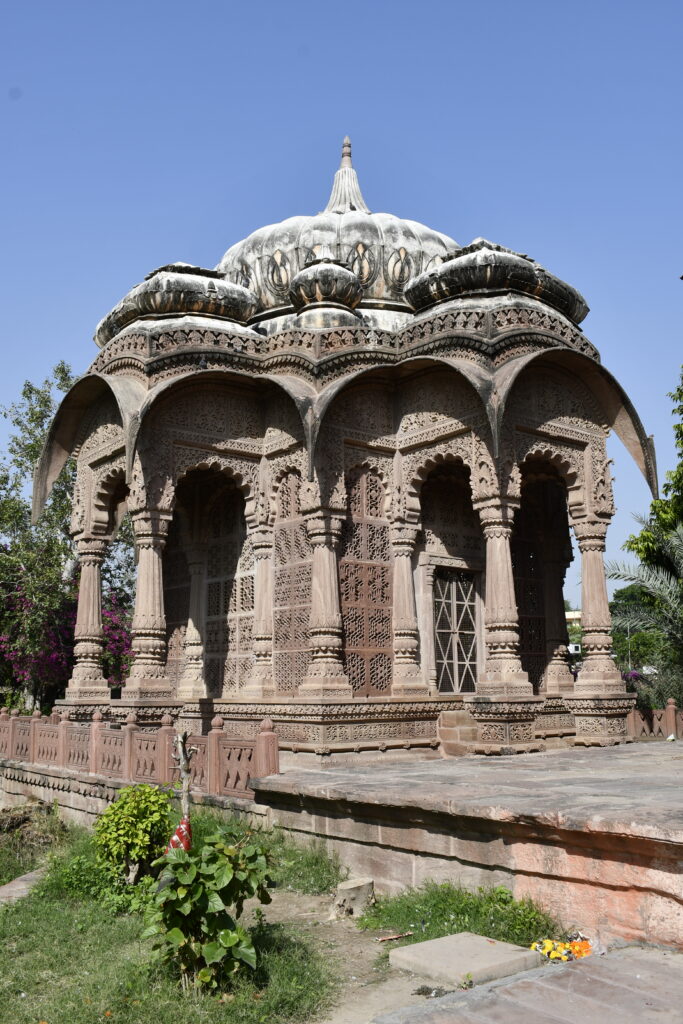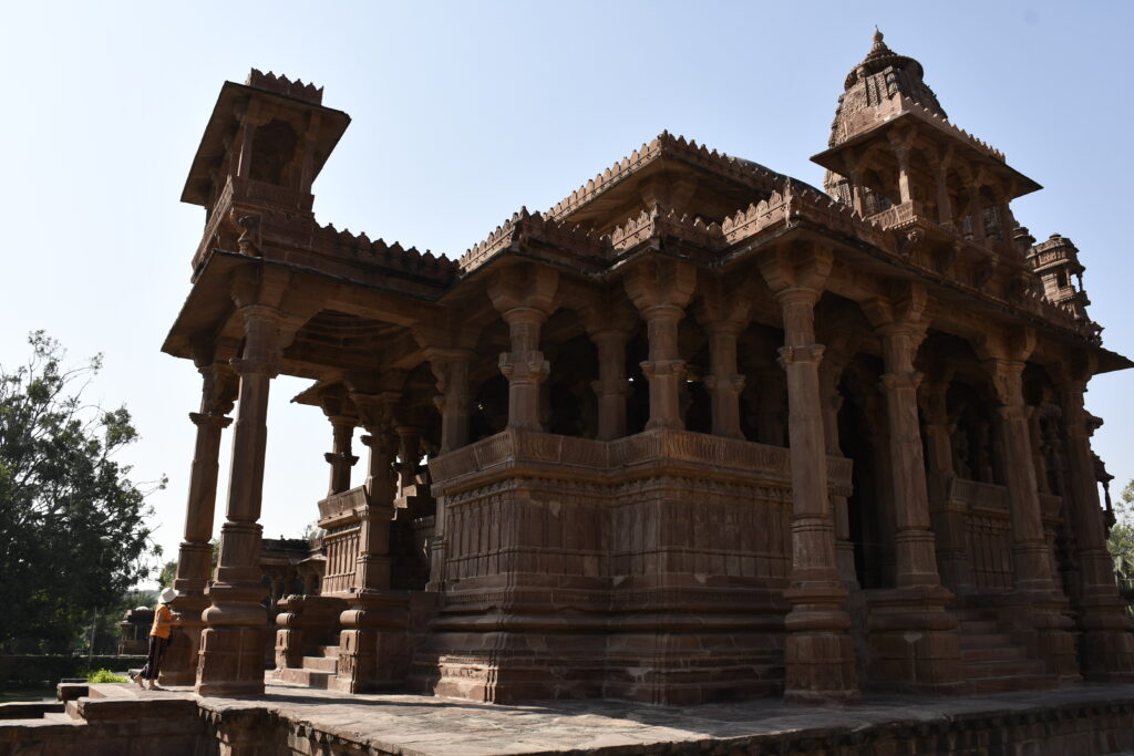 Mandore, about 9 km from Jodhpur, was the ancient capital of Marwar before Jodhpur was founded. It features the Mandore Gardens, known for their striking cenotaphs (chhatris) of Marwar rulers, a temple-like memorial to Maharaja Ajit Singh, and the Hall of Heroes with carved figures of local deities and warriors. The site also includes ruins of the old fort and lush gardens inhabited by langurs.